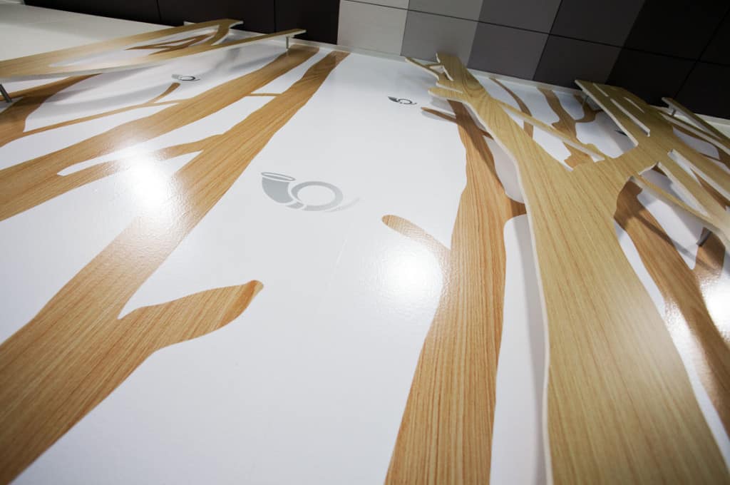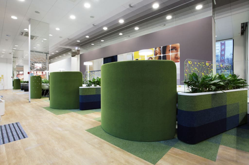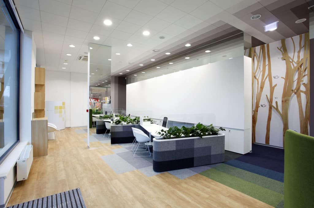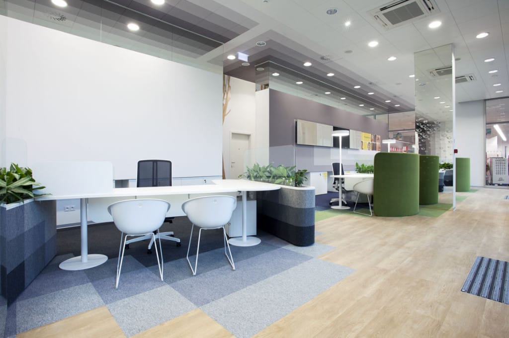 Hlavným zámerom návrhu bolo zlepšiť kvalitu prostredia, a to ako z pohľadu klienta, tak aj pracovníkov pobočiek. Okrem viditeľných zmien v bankovej hale sa zvýšil aj komfort zázemia pre zamestnancov pobočky. Autori interiéru si stanovili cieľ vytvoriť príjemný priestor pre kontakt s klientmi banky. Tomu podriadili aj formu, farebné a materiálové riešenie.